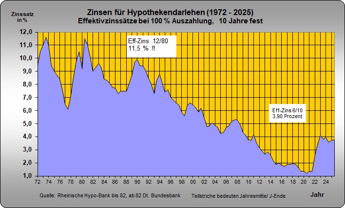 Tiefstand deutscher Zinsen / z.T. unter 1,3 Prozent Effektivzins bei zehn Jahren